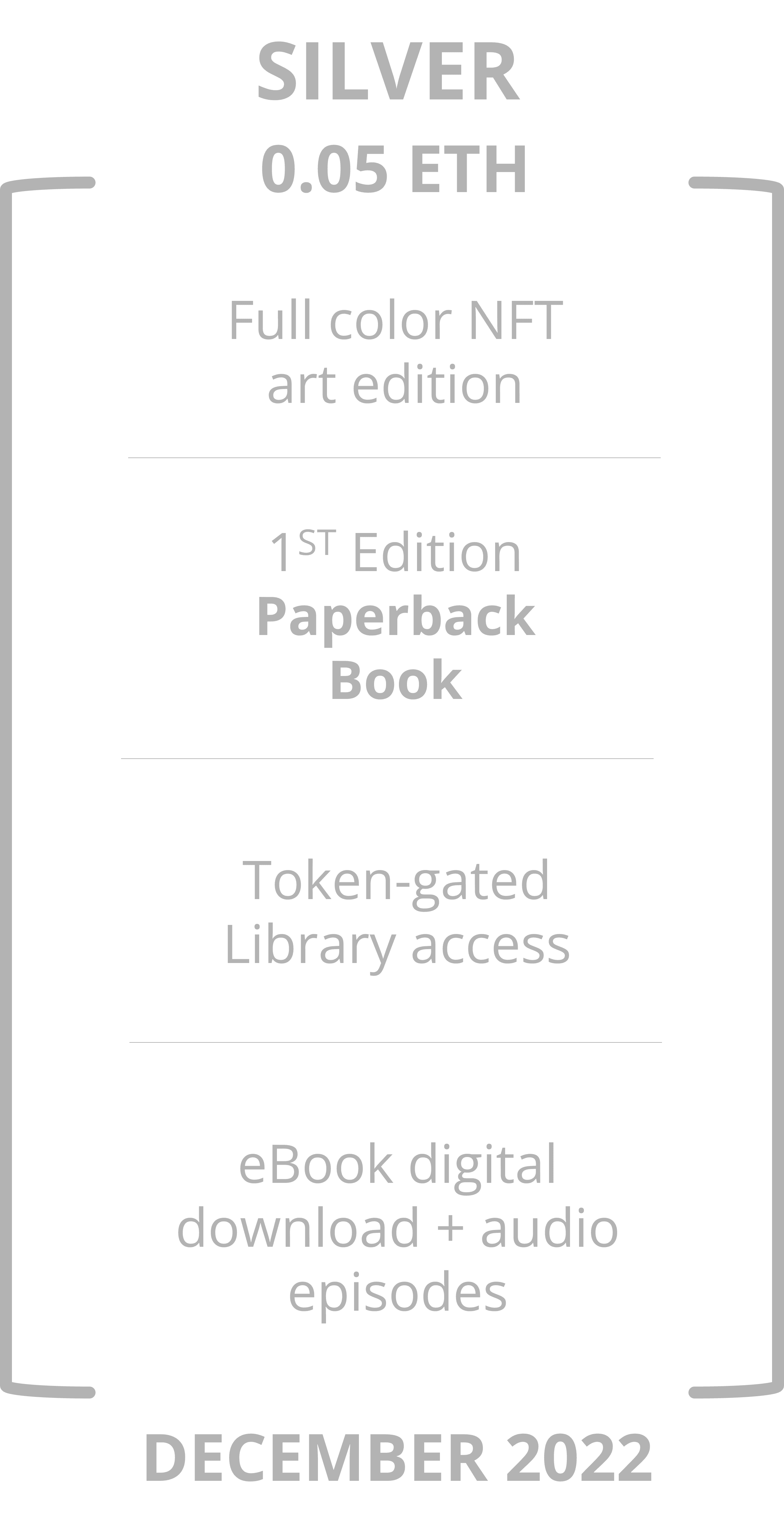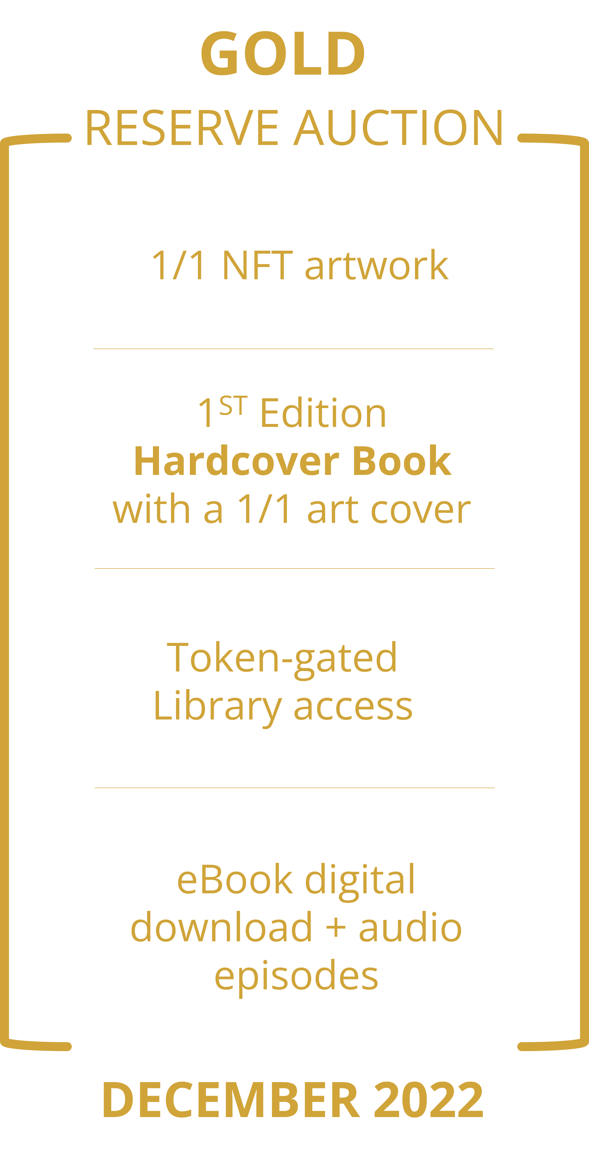 Each Gold tier NFT includes: an original 1/1 artwork,a 1/1 hardcover copy of Death-Bringer with that art as the book cover, and full token-gated Library access to the eBook and audiobook. All 1/1 artworks are available via reserve auction, links below.
